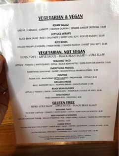 Locally owned bar and restaurant offers three vegan options which includes an Asian salad, lettuce wraps and a rice bowl.